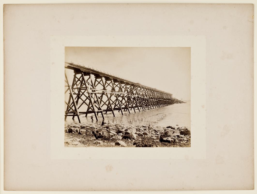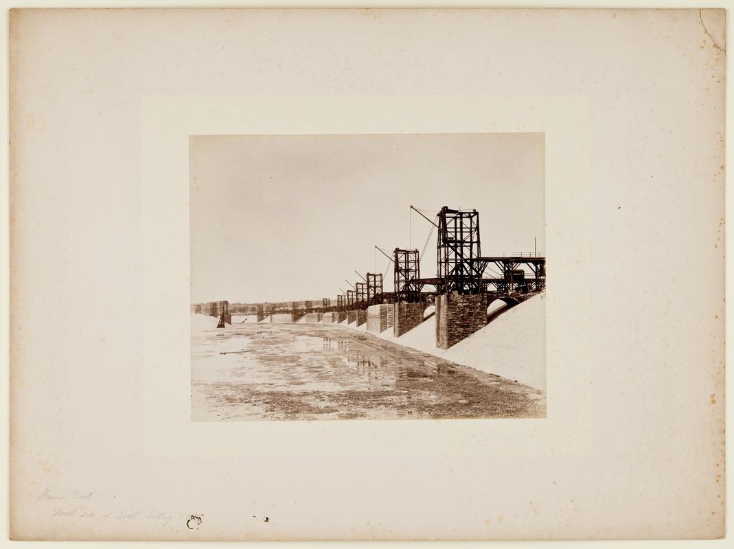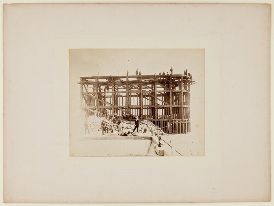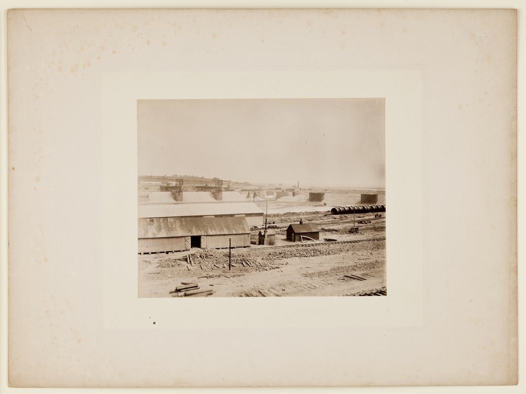 Construction of Barry No. 1 Dock showing the fitting of a pair of dock gates. Mounted on card.