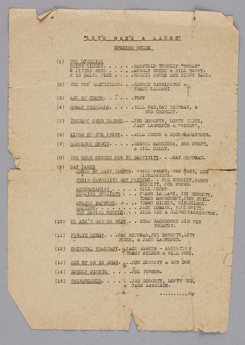 Programme advertising a wartime concert at the Olympia Cinema, Cardiff, 1 February 1942.