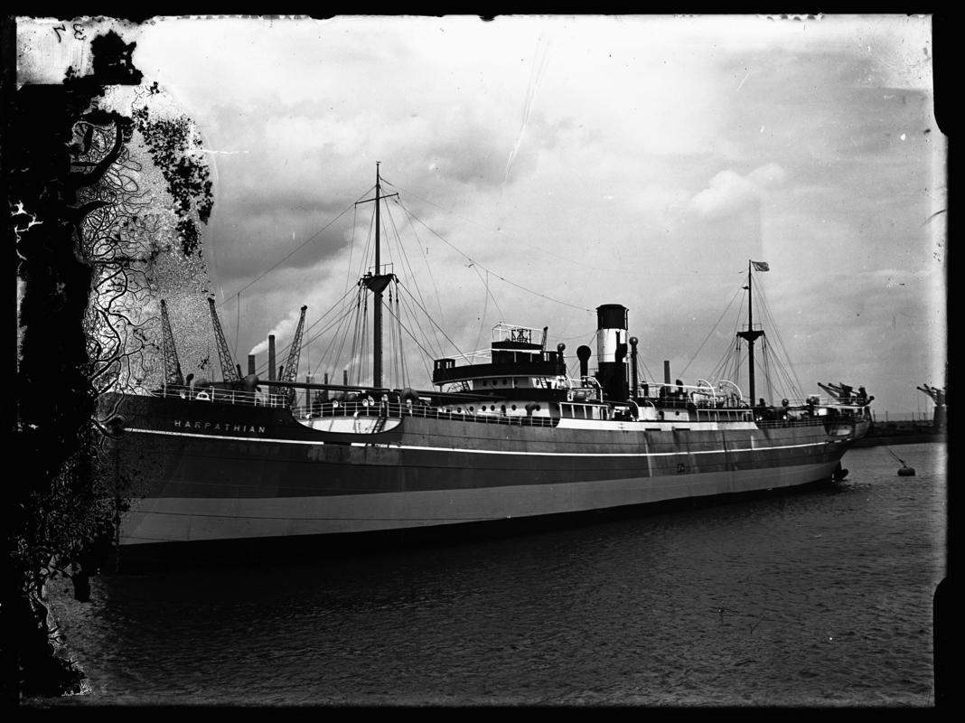 Starboard broadside view of S.S. ALMA DAWSON at Cardiff Docks, c.1936.