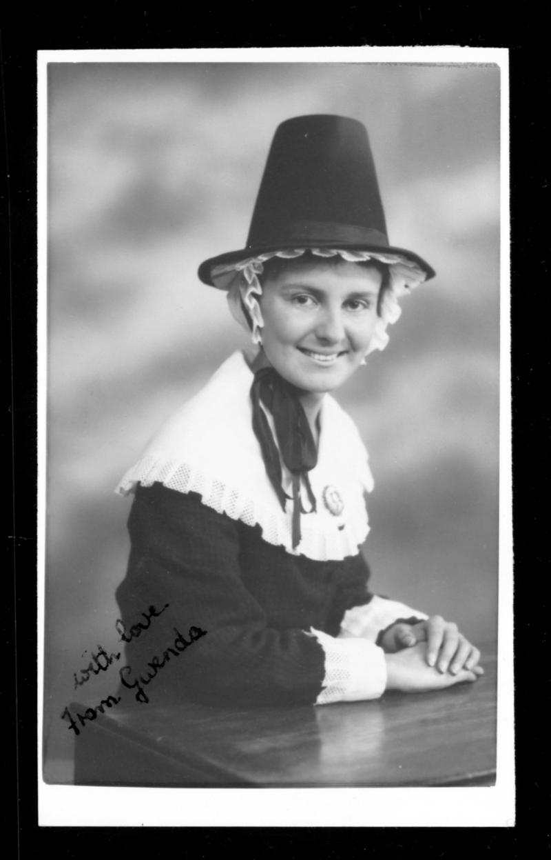 In 1960, as a 20 year old studying at a teacher training college in Liverpool, Gwenda Davies's mother spotted an advert for the role of 'Hostess for Wales' and encouraged her daughter to apply as a summer job. She was interviewed by a panel at a Cardiff hotel, and the announcement that she had won the competition was made on television. Typical duties of the role included meeting dignitaries and attending public events - such eisteddfodau.