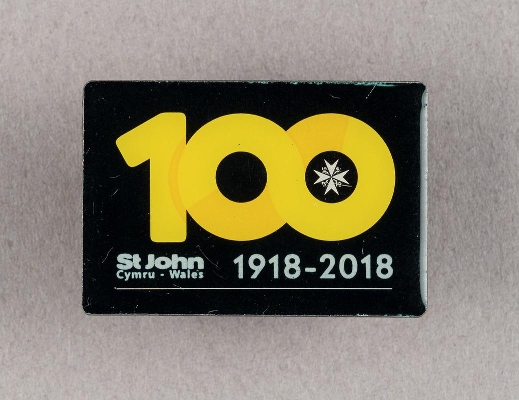 Two badges are hand-stitched to upper right chest: number '11' embroidered in metal thread on roundel of black fulled wool ground (Ø 22mm); St John's Ambulance Brigade badge below: padded ring covered in white cellulosic tabby woven fabric, thin white leather or paper? and white tabby woven silk; embroidered inscription using black wool (?); Maltese cross in centre of ring, embroidered in metal thread and metal wire, as well as white silk or cotton thread, on roundel of black fulled wool ground (Ø 56mm). Scrolly monogram 'WR' in written or printed in black on white cotton tape stitched to inner CB (at lower edge of lining).
