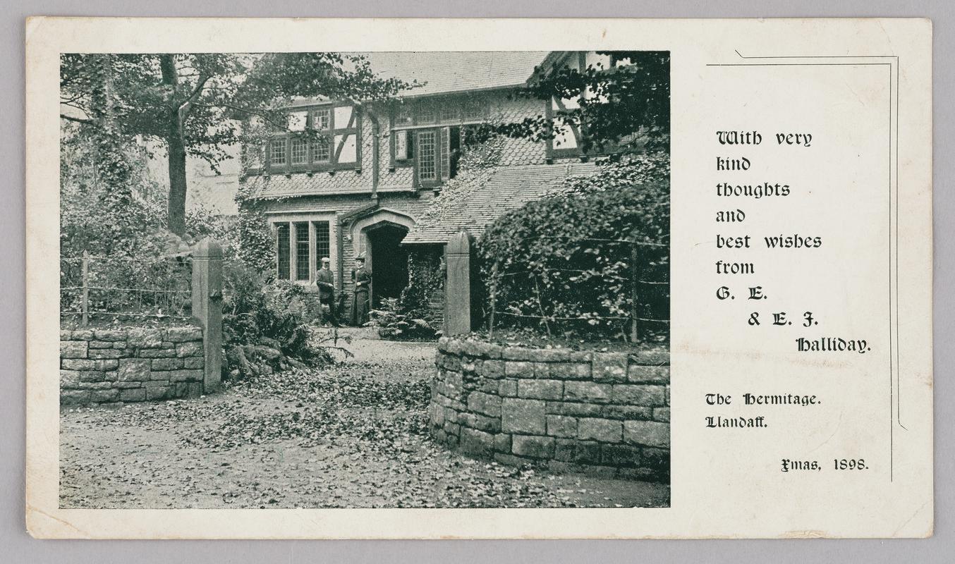 Black bordered funeral card printed in Welsh and bearing the photograph of Edward Lewis, who died 18 December 1911. Funeral hymns printed on the back.