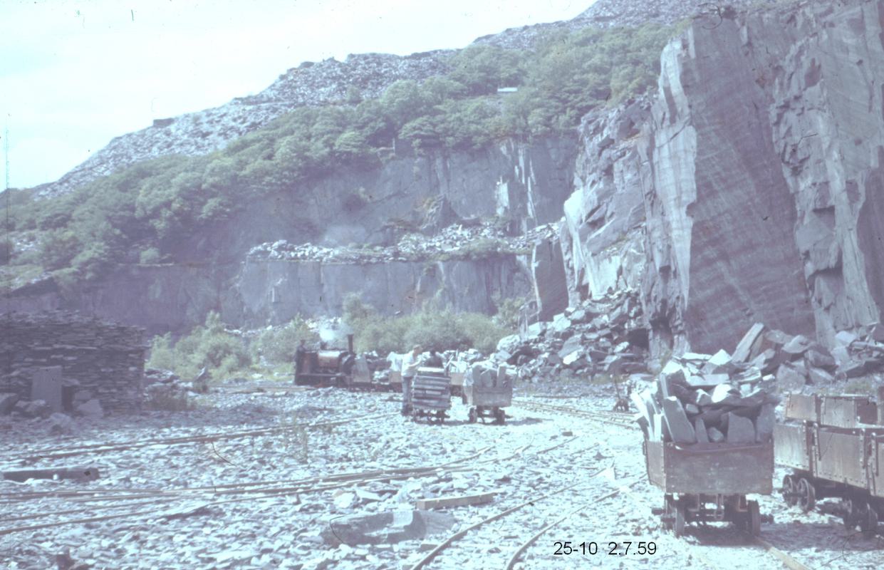 Group of 57 quarrymen at Twll Coch, Dorothea slate quarry.