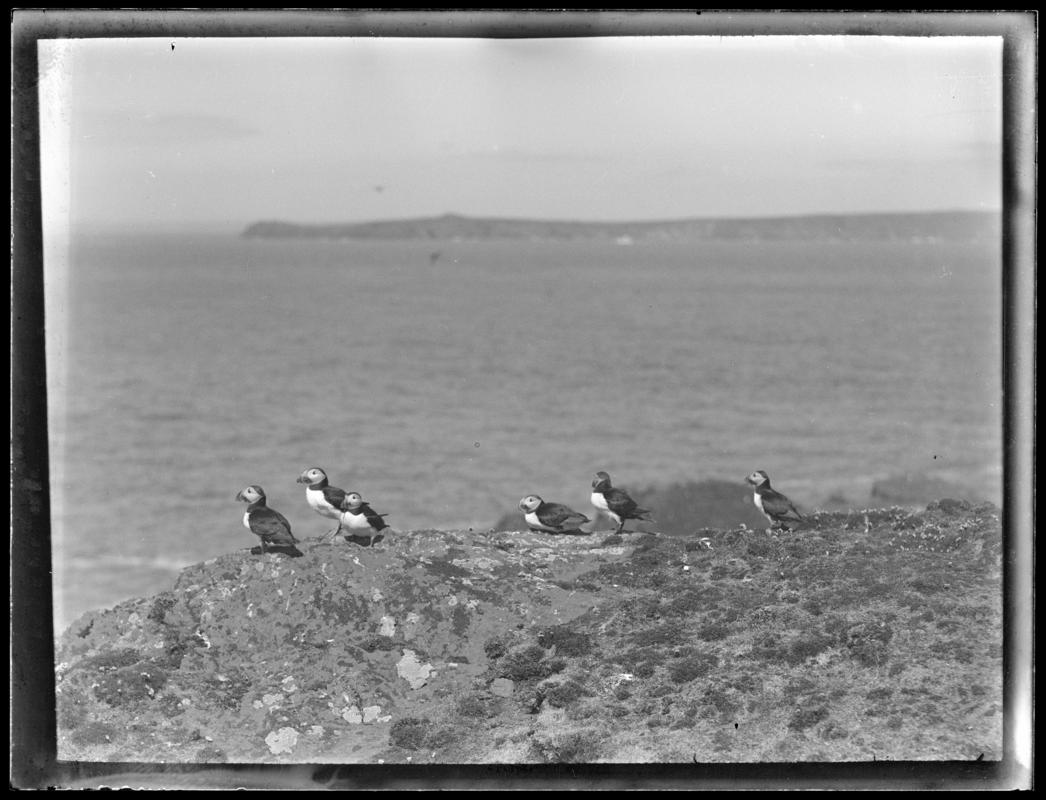 Robin at nest, glass negative