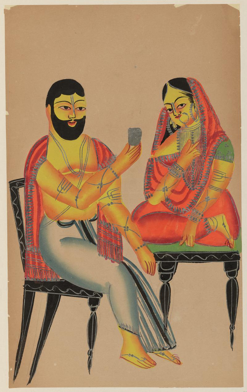 The name "Kalighat '' is derived from the Kalighat market situated near the Kalighat Temple along the BuriGanga River, historically a significant trade centre in East India for centuries. Initially, this art style depicted 'History Painting,' later evolving into 'Genre Painting,' capturing the Babu Culture during the early colonial period in Bengal. Here, intriguing parallels emerge between Western art and Kalighat art.