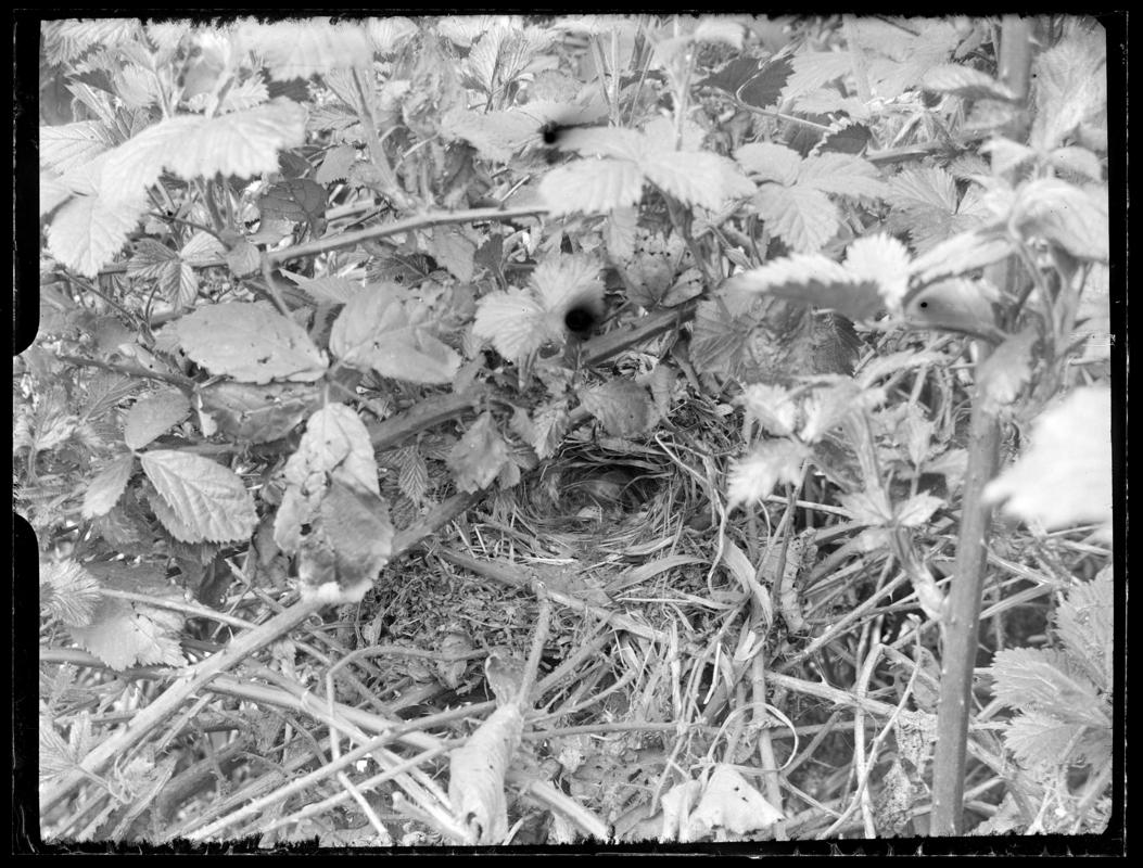 A Common Sandpiper (Actitis hypoleucos) at nest, Llanedw, Radnorshire. Photographed in the 1950s.
