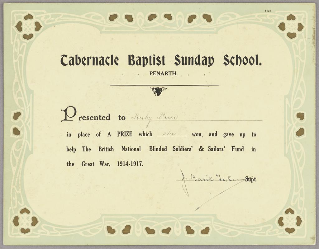 Sunday School certificate