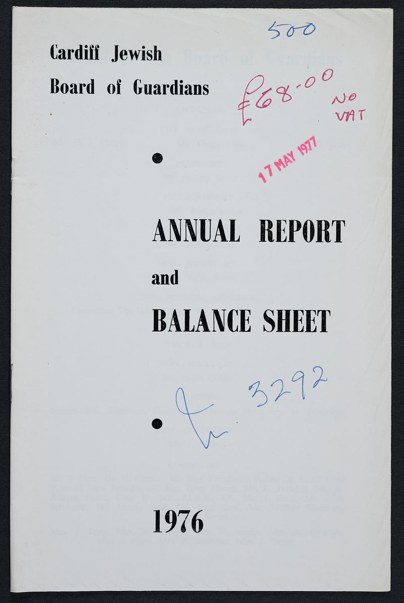 Agenda for the 'Cardiff Jewish Board of Guardians' annual general meeting, 17 July 1979. Handwritten order details on the front. Stamped with date 8 June 1979.
