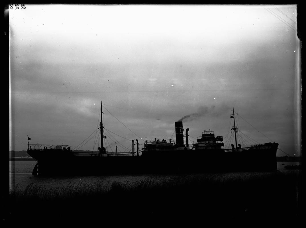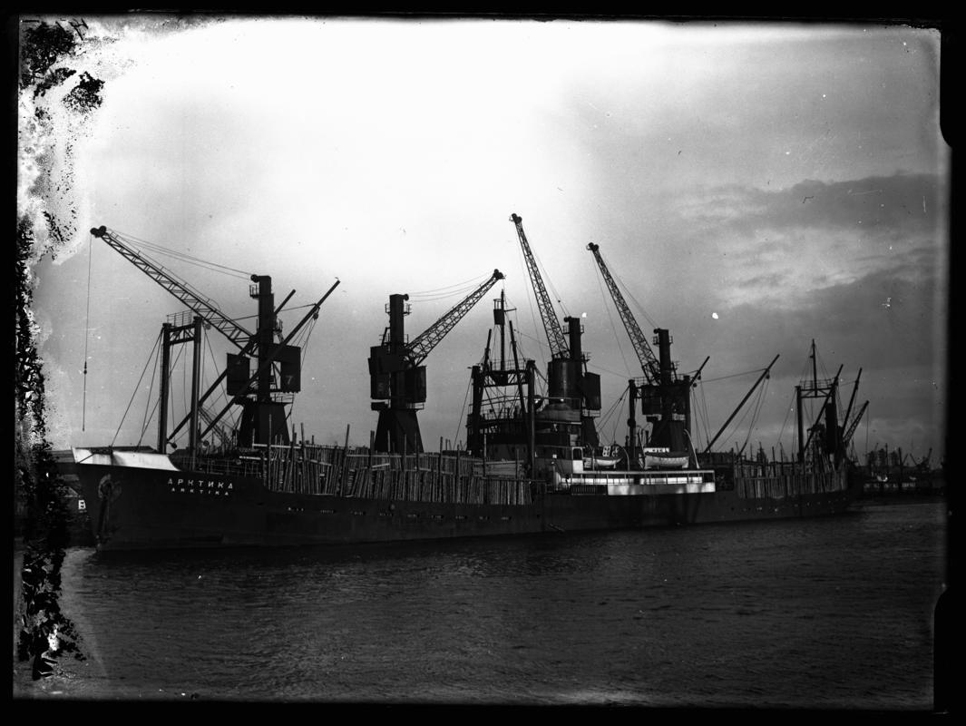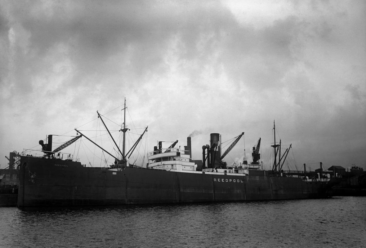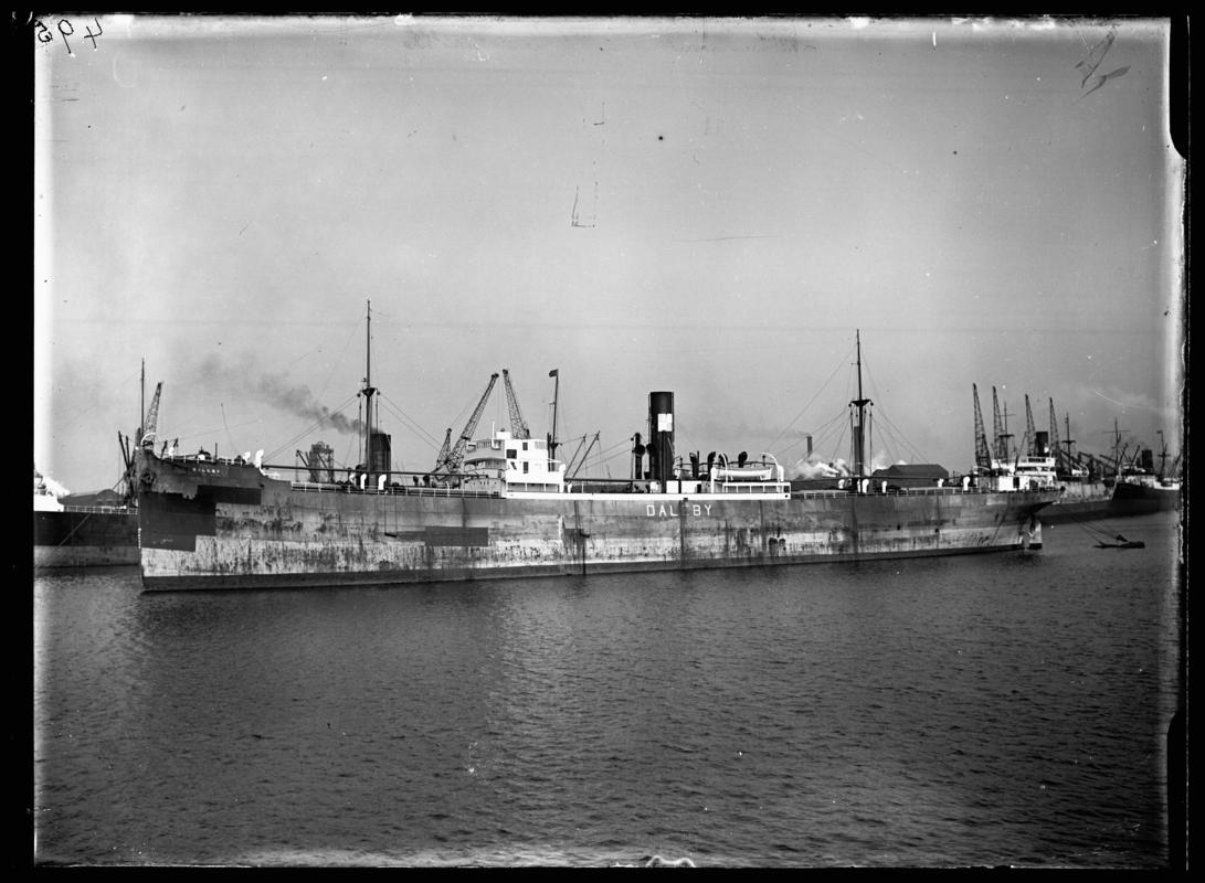 3/4 port stern view of S.S. DALEMOOR at Cardiff Docks, c,1936.