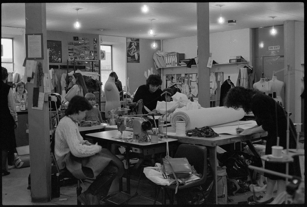 View of engineering works floor with unidentified man in background, next to Tubal Cain Foundry, Butetown.