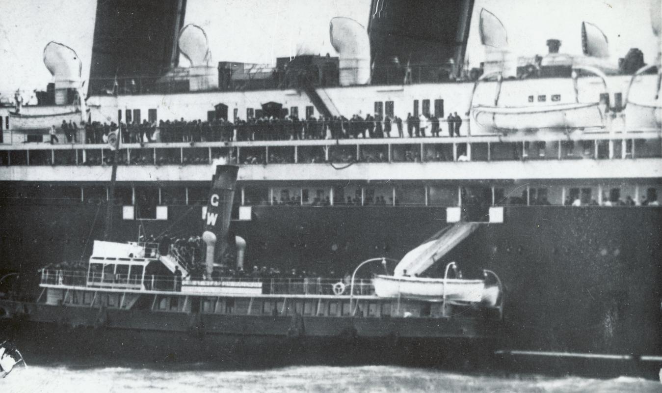 View shows the S.S. CARMANIA taken from another vessel at Fishguard.