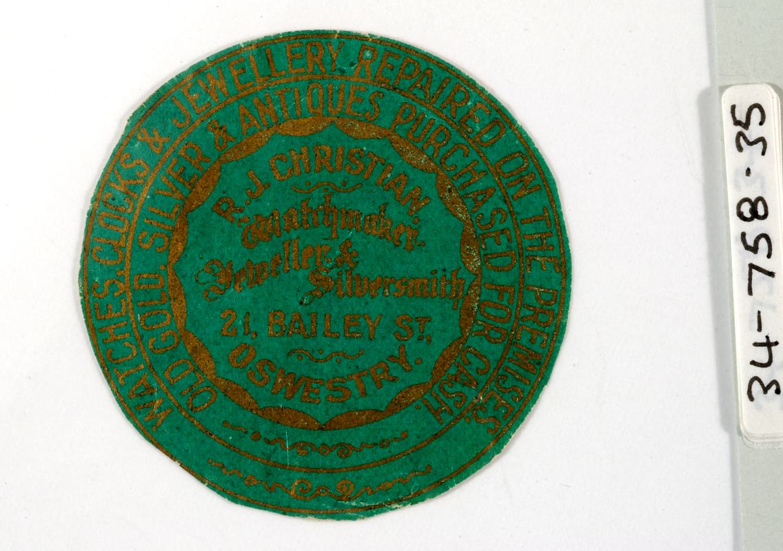 Small black box-style leather covered wooden case with hinged lid and gold metal clasp on the front. Top of the case has DETECTIVE INSPECTOR F. PARRY FINGERPRINT CASE in raised white type on two strips of blue tape pasted on to it. Containing equipment for fingerprinting and collecting evidence at crime scenes (F09.20.2-11)