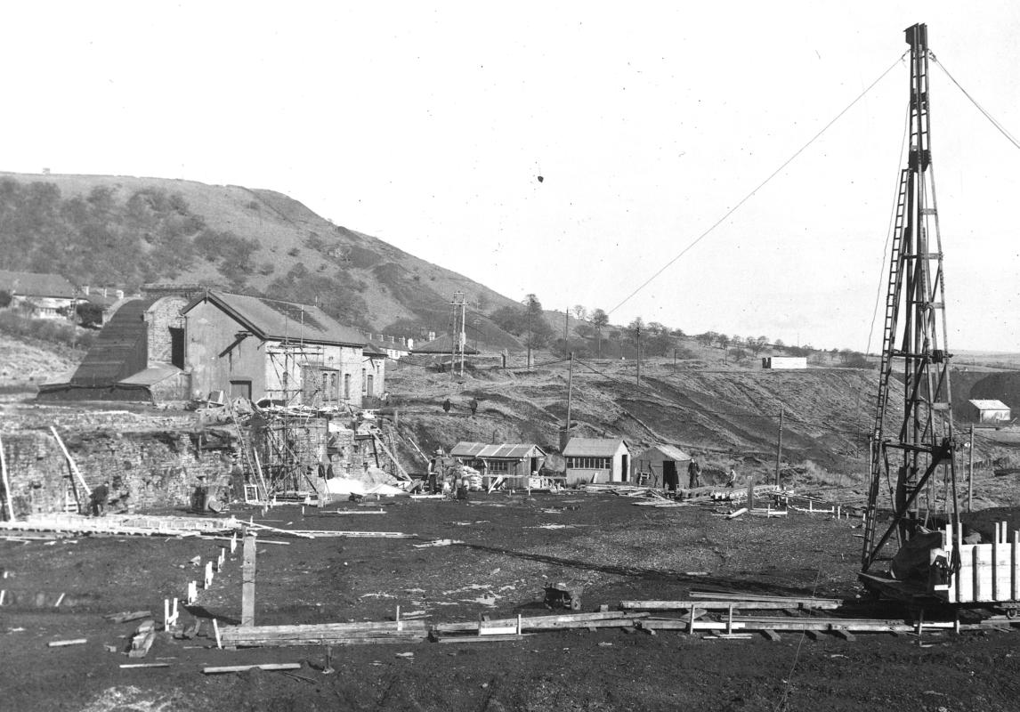 Black and white photograph showing construction at Hafodyrynys new mine, 1957.