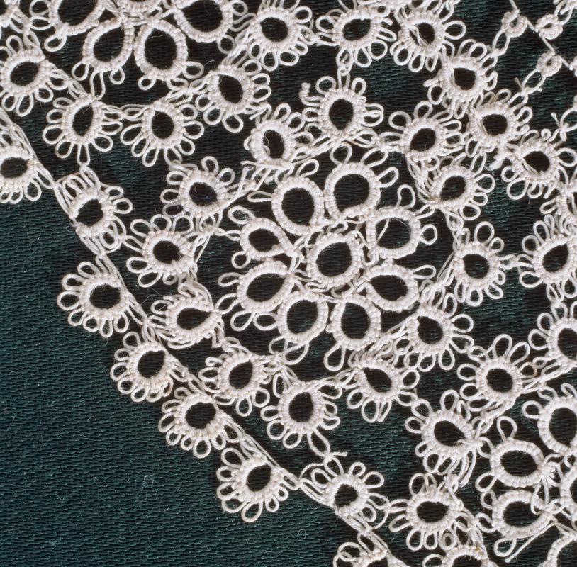 Fur collar made from black curly haired fur (un-identified) long thin shape with tapered ends which split into 2. Lined with black silk satin, slip stitched to the edges, 1 metal hook and loop on the corresponding side with a chain on the loop.