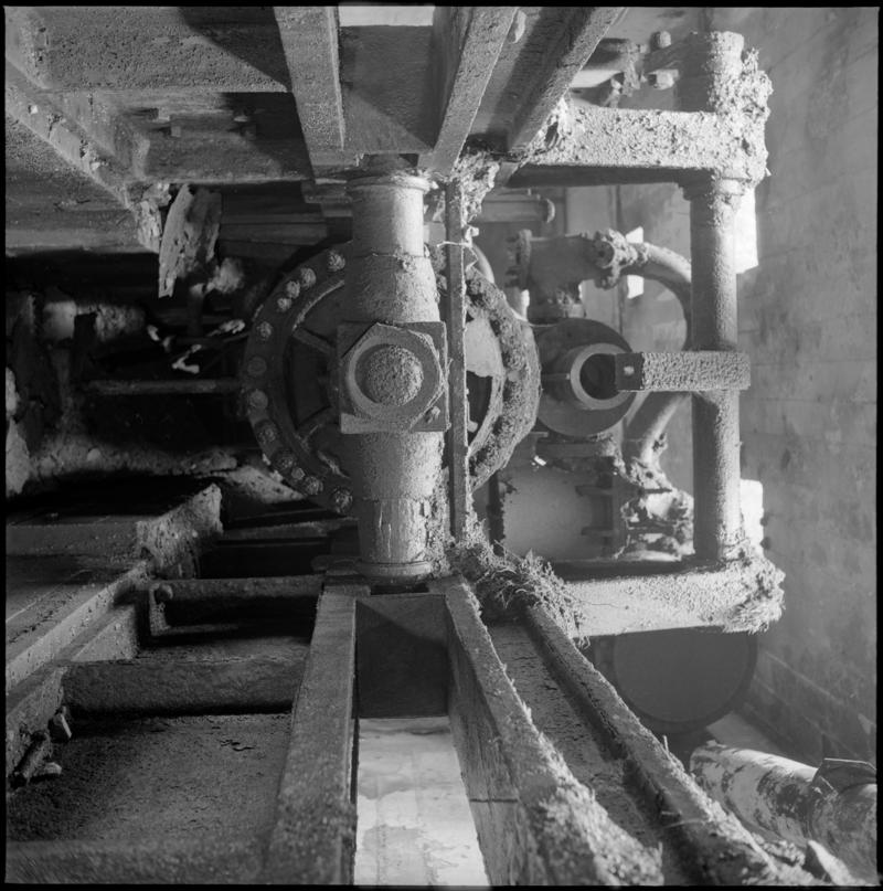 Black and white film negative showing a steam pump underground at Great Western Colliery.