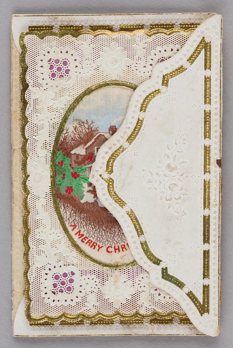 Peg doll representing St Nicholas. Painted features, wooden torso, arms and legs. Wearing bishop's vestments, with mitre on head and crook in hand. Originally with beard (hair glued to piece of kid and attached to chin, now worn away). From Belgium.