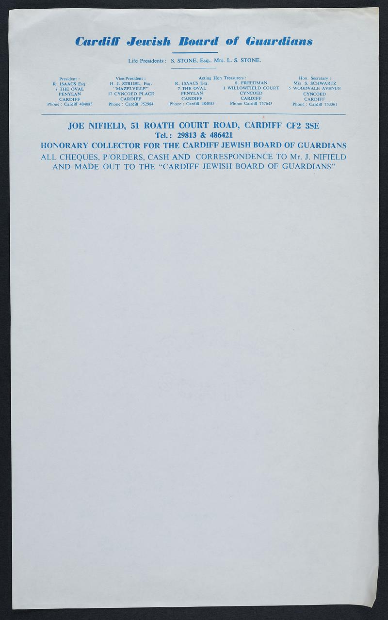 National Coal Board, West Wales Area Office, Tondu. Black print on blue paper with date typed in black. Dated 16th October 1972. Letterhead cut from original letter.