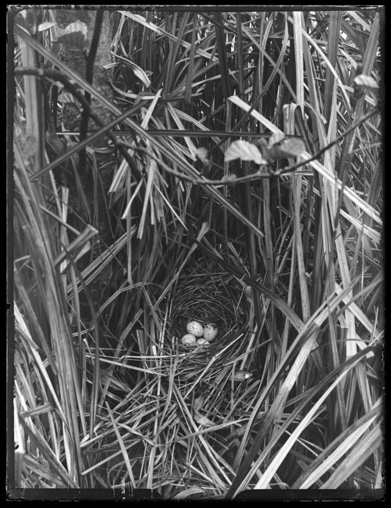 A Great Crested Grebe (Podiceps cristatus) on nest at Hensol, Vale of Glamorgan. Photographed 29 April, 1922.