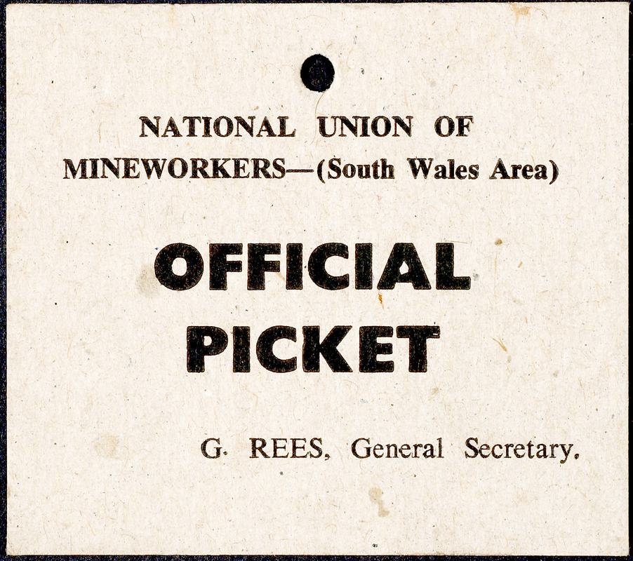 Circular white metal badge with headgear design surrounded by inscription set in blue, green and black enamel. Pin attachment on reverse.