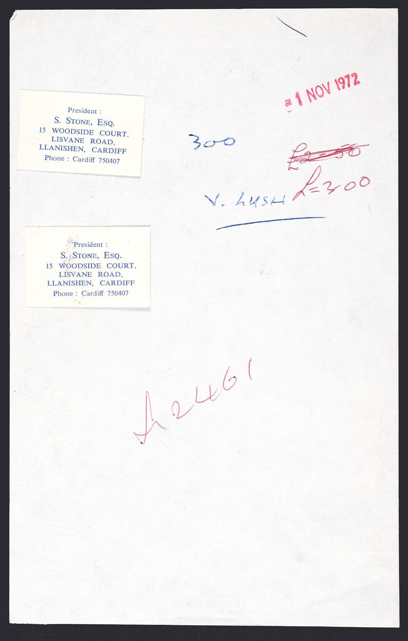 'The Tridwr Bingo Club' membership card for 1970. Two printed on one card.