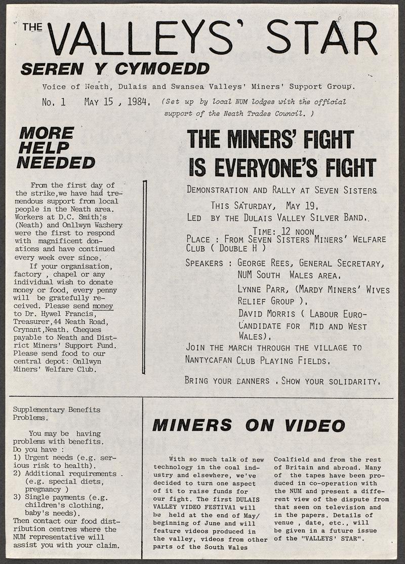 The Valleys' Star/ Seren y Cymoedd, No.36, 3 May 1985. "Voice of Neath, Dulais and Swansea Valleys Miners' Support Group. (Greenham Comrades etc.)"