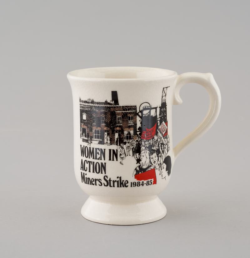International Brigade 50th anniversary commemorative mug. Black and red print on white background.