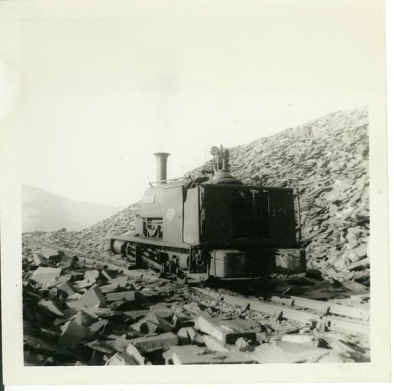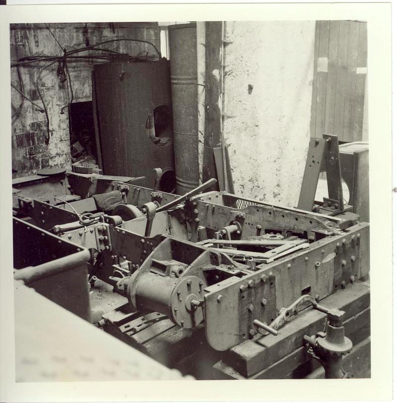 Top dome of P.V.I. settled inside Reactor 1 "dustbin", during construction of Trawsfynydd nuclear power station. Mounted on card with typed description below.