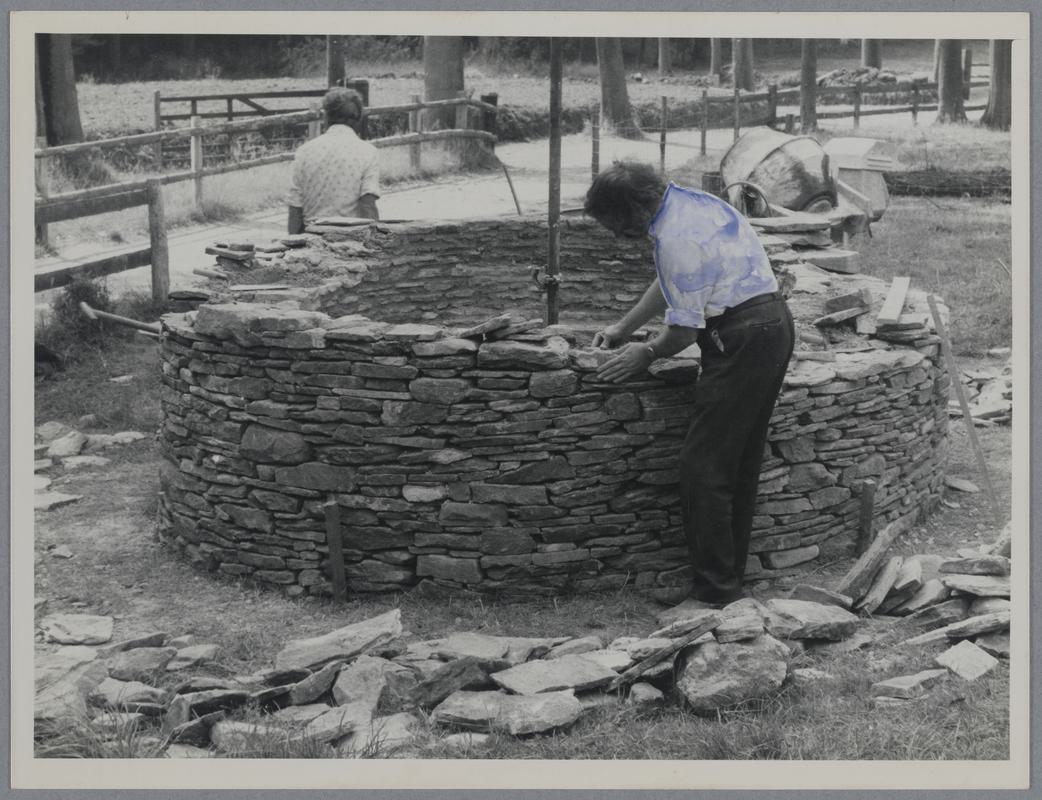 Rebuilding Hendre Wen barn at St Fagans, 1977.