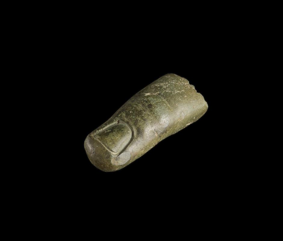 One surface of the fragment is cast with two soft ridges, perhaps the remains of moulded hair or a garment?