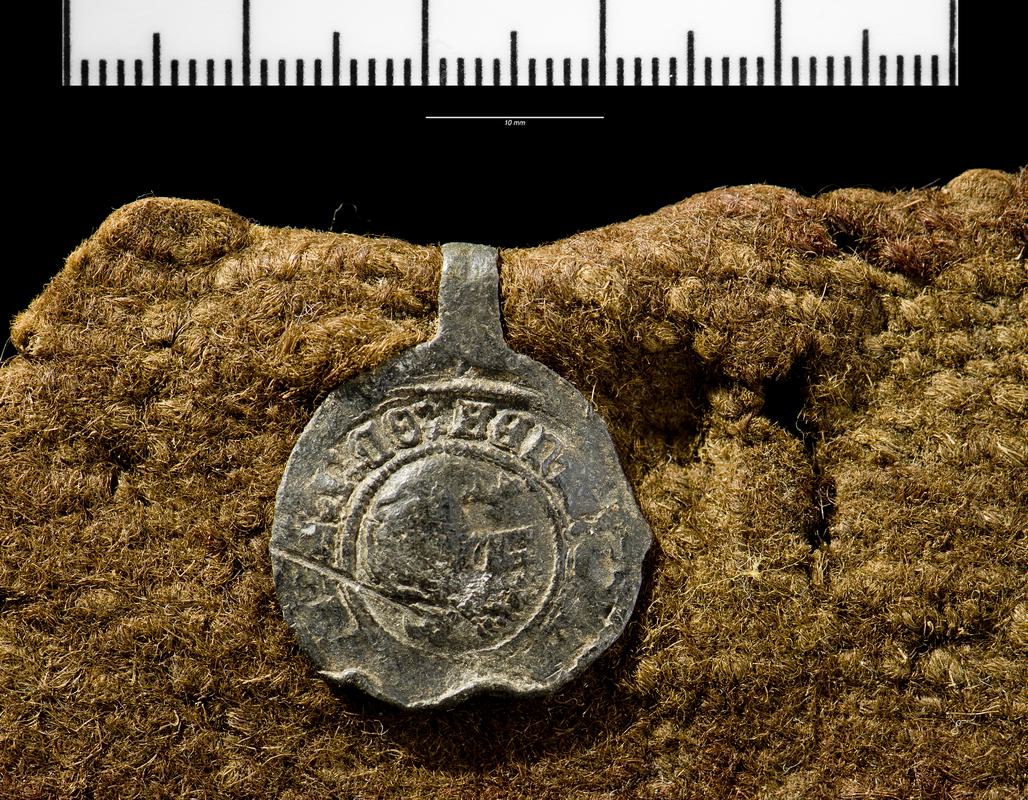 Lead seal, possibly Roman with the letters A.L. on one face and a poorly executed tree on the other. Cast in a misaligned mould creating an irregular circumference.