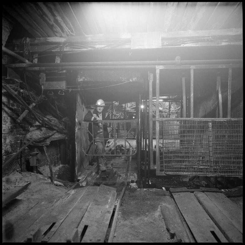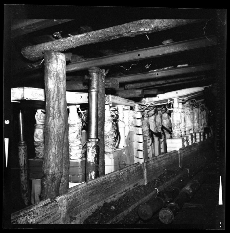 Black and white film negative showing a pit pony and Ostler, underground at Lady Windsor Colliery.