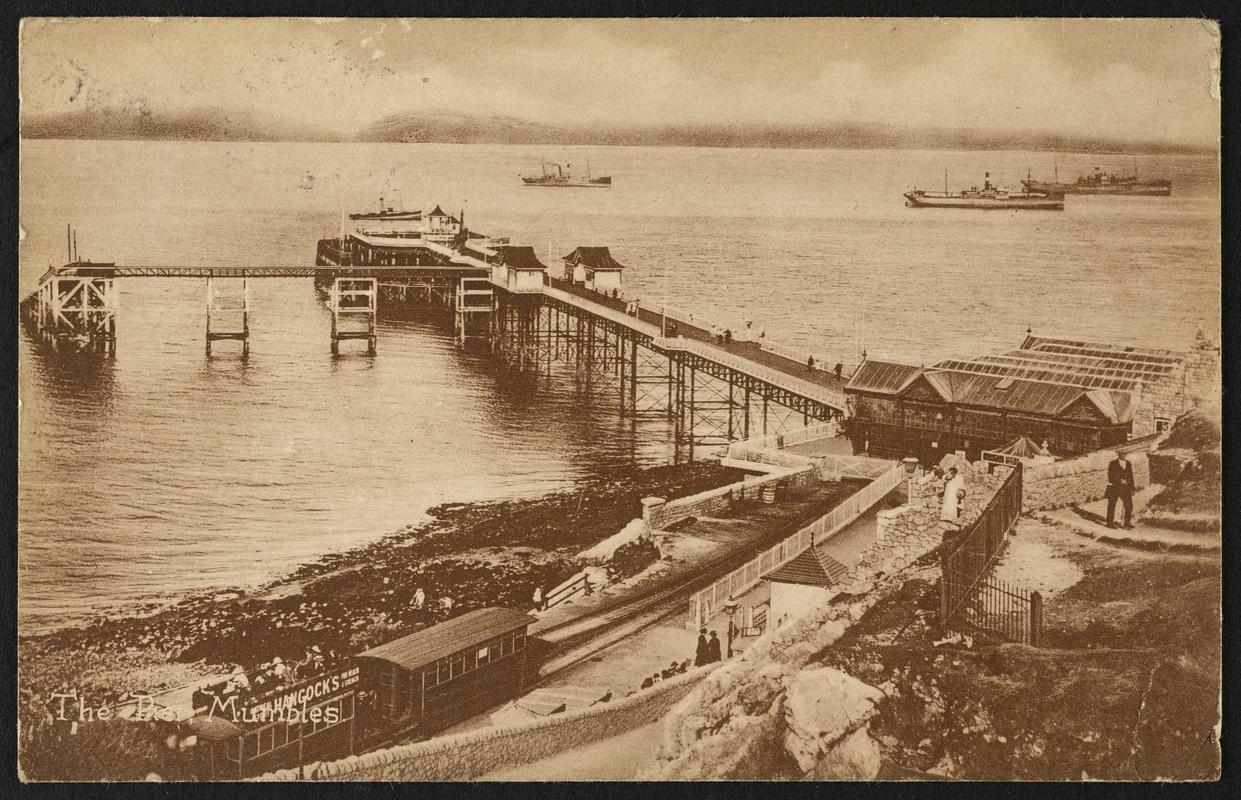 General view of Mumbles pier showing Mumbles railway. Message written on reverse with green half penny stamp franked Cardiff April 18 1904.