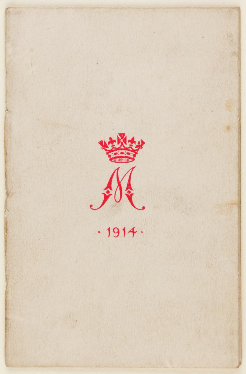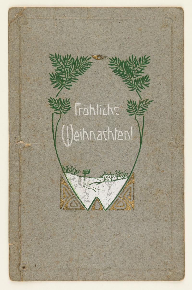 Christmas card of the British Expeditionary Force. Front inscribed 'Y ddraig goch a ddyry gychwyn'. The words of the Welsh national anthem are printed inside.