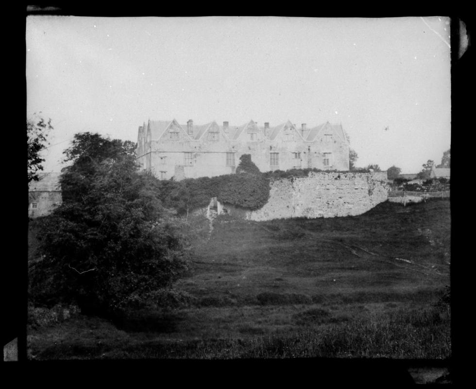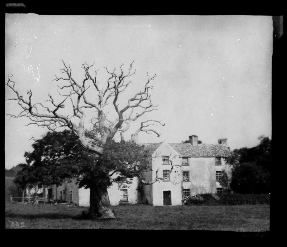 Calotype negative showing the front of Coedriglan house. Tab at each corner.
