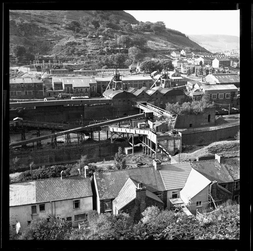 Black and white film negative showing a pit pony and ostler at the undergound stables, Lady Windsor Colliery.