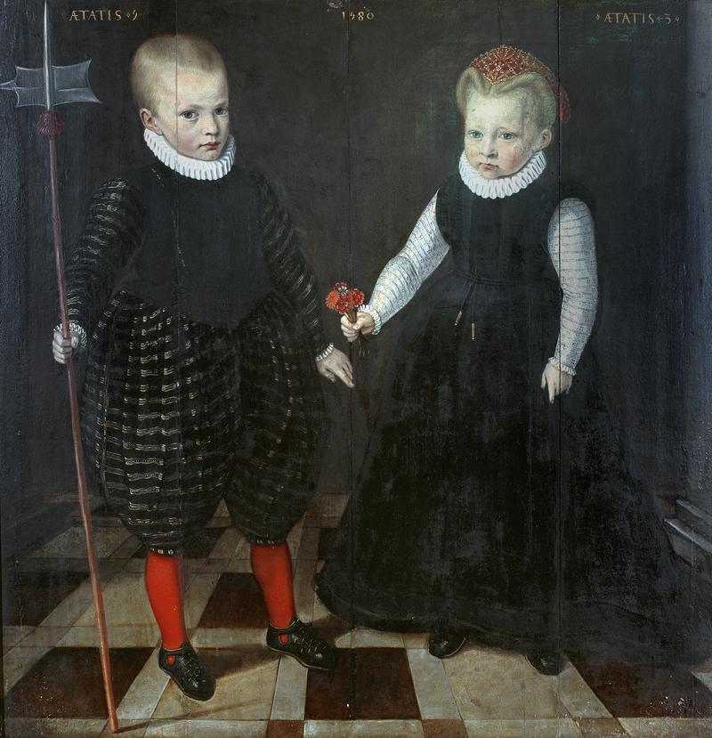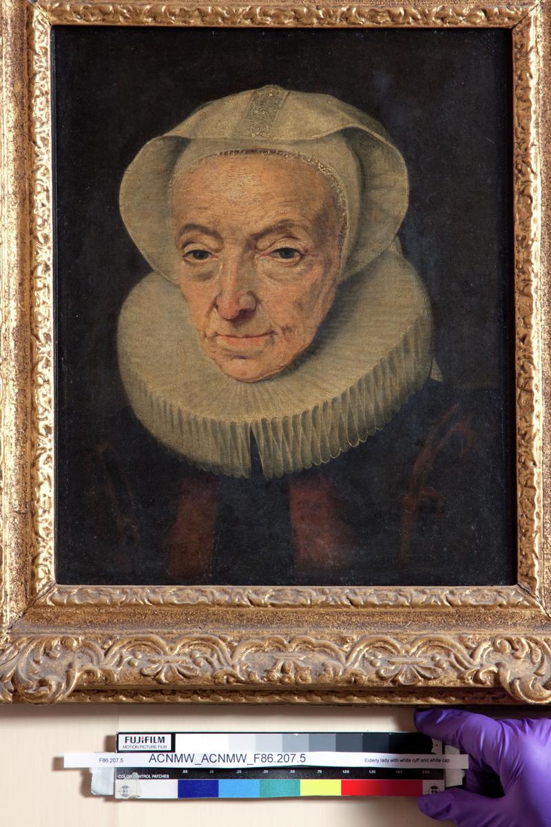 Portrait in oils on canvas of an unidentified Countess of Plymouth, wearing a low cut blue dress with lace chemise and sleeve. Possibly a later copy of an 18th century portrait. Gilded frame, glazed.
