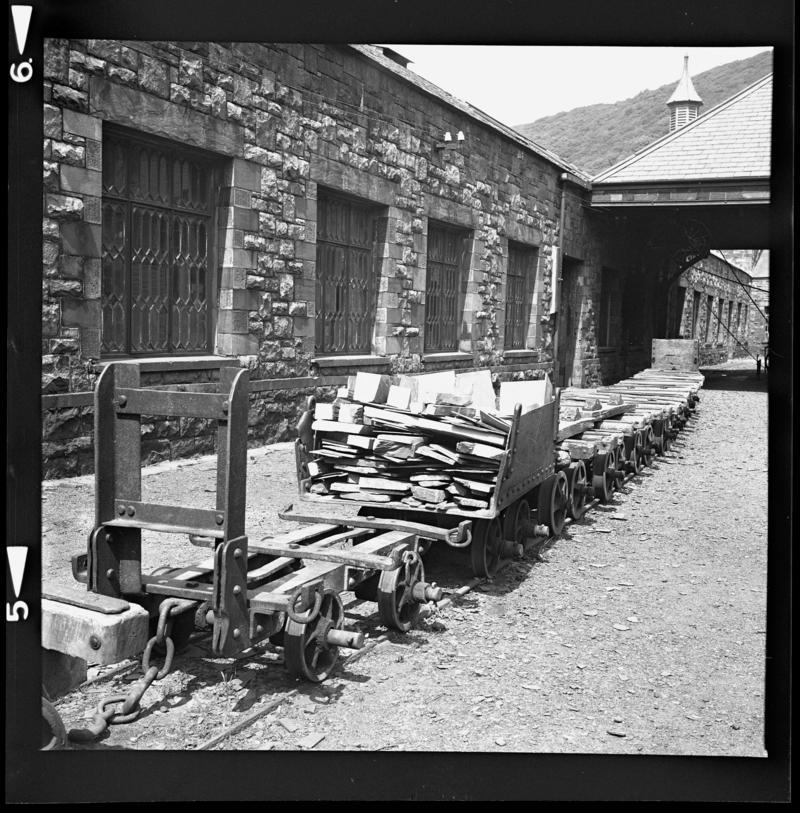 Photograph showing a group of ten workers at Dinorwig Quarry. Standing amongst the ten men is one woman. It is believed that the photograph was taken during the 1930s.