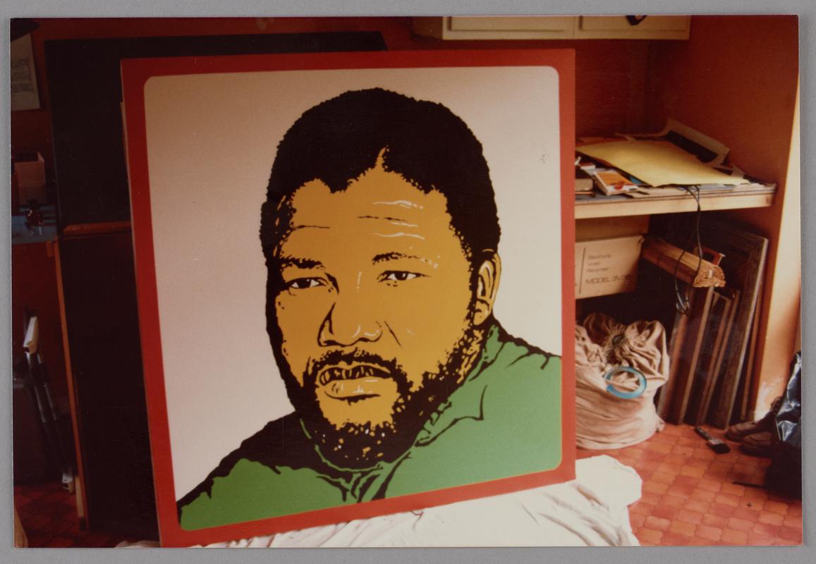 Digital copy of a photograph of the Wales Anti-Apartheid Movement's stall at the National Eisteddfod. Date and location unknown.