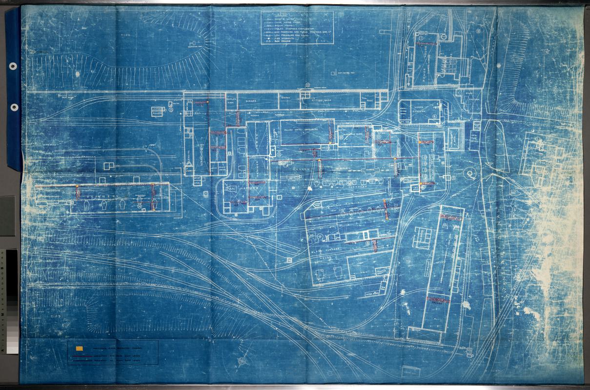 Mss. plan on linen of Morfa works, Llanelli; fully labelled. Scale 1/16" to 1'. Dated November 1927 and corrected January 1938.