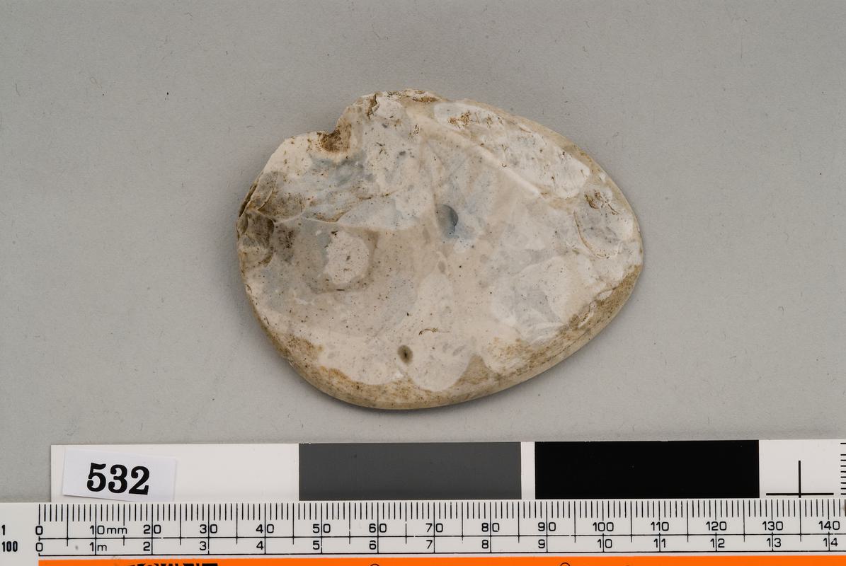 Flint leaf-shaped arrowhead, 4000-3000 BCE. From Cowbridge, Vale of Glamorgan. Pieces of bone or antler were used to press thin flakes from the edge of a piece of flint.