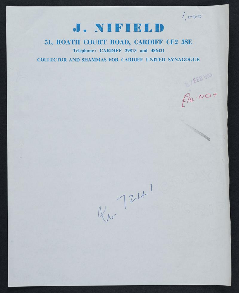 Black and red print on white paper with date typed in black. Dated 7th March 1972. Letterhead cut from original letter.