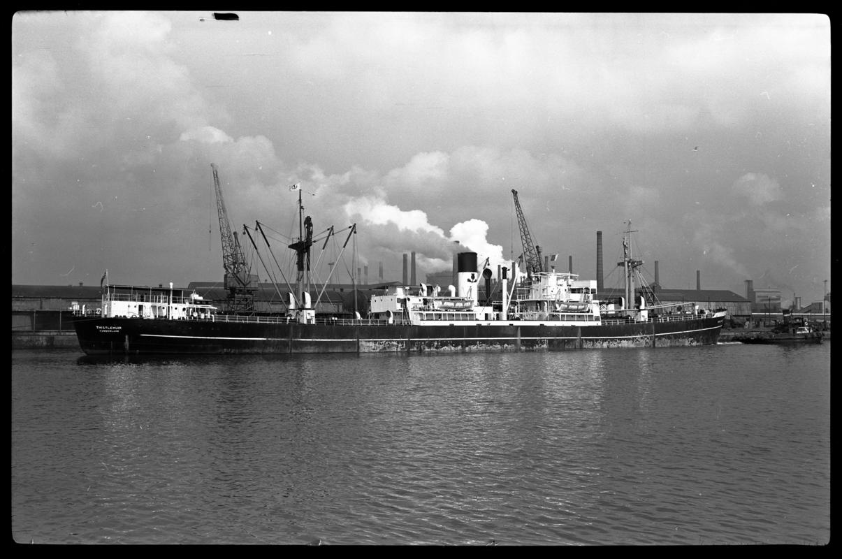 Starboard broadside view of S.S. BENALBANACH at Cardiff Docks.