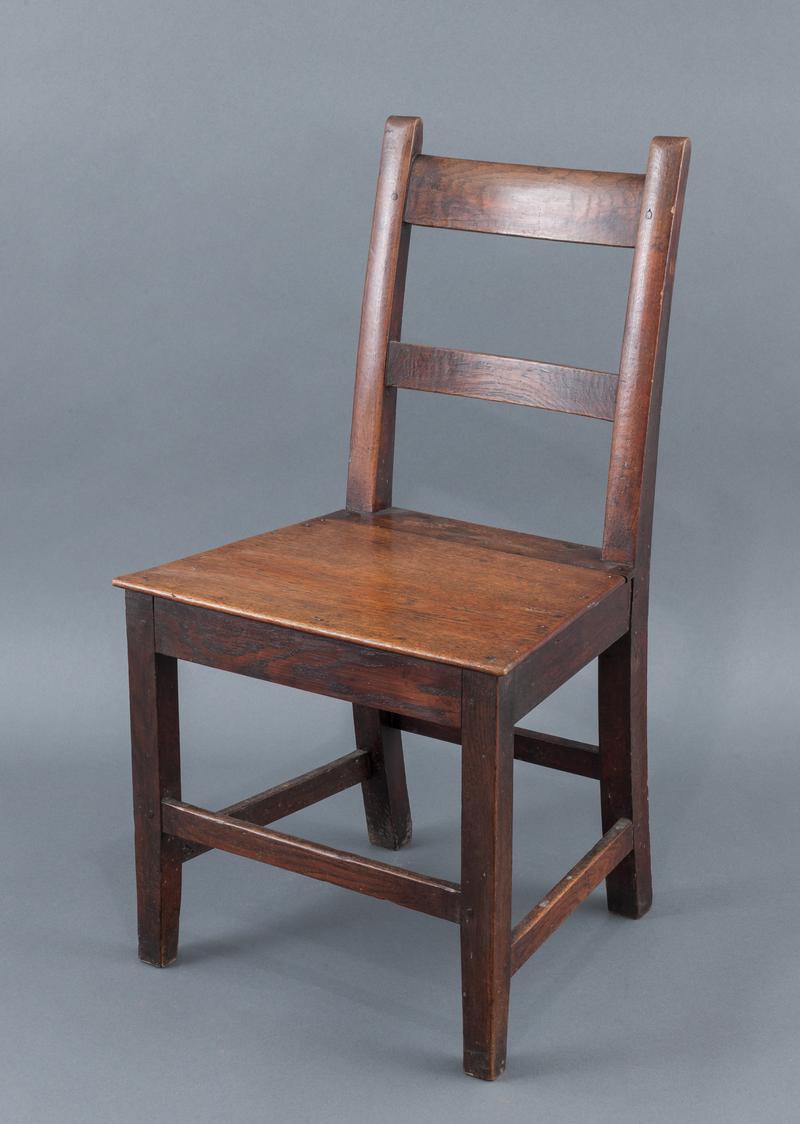 One of a pair with 62.143.50. Plain grooved crest rails. Three grooved verticals in back. Plain taper legs in front.