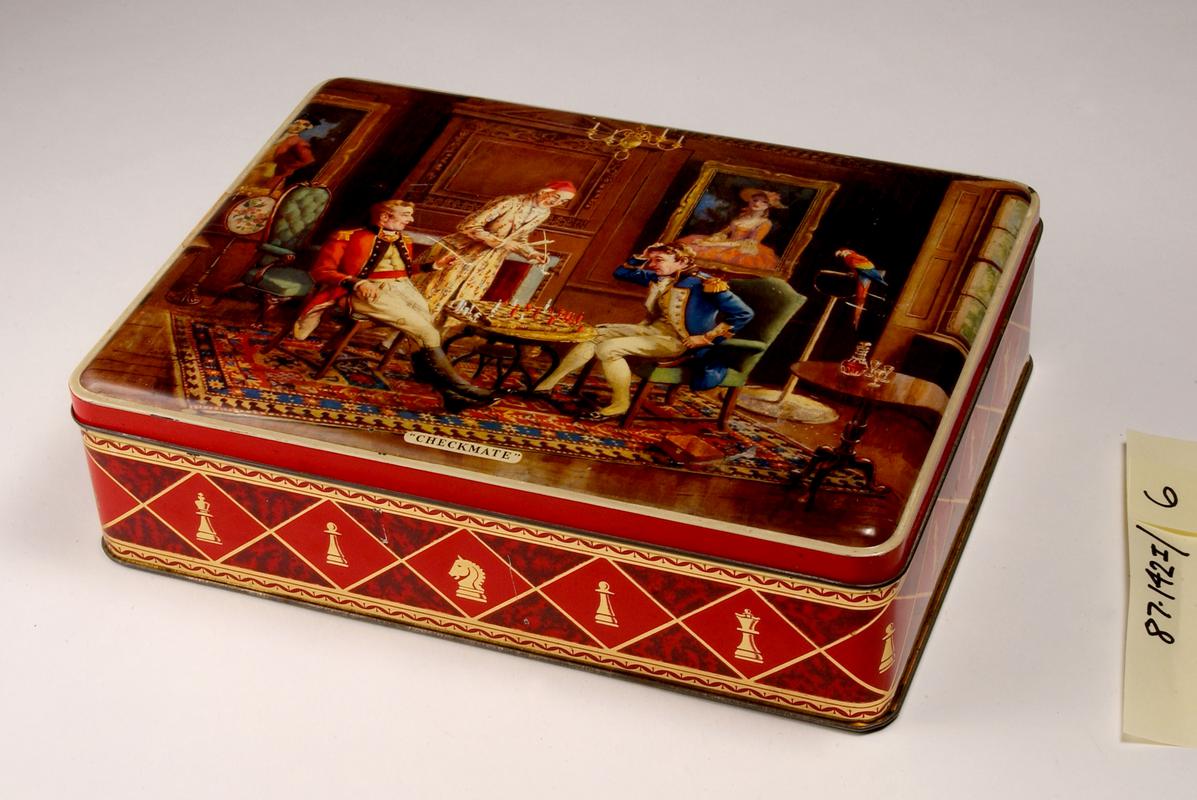 Souvenir tin box of the Visit to Cardiff of the King and Queen, 13 July 1907, with two portraits on front showing King Edward VII and Queen Alexandra.
