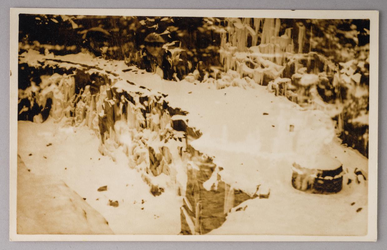 Hand drawn plan of building showing restaurant, shop, exhibition and office areas. Undated.