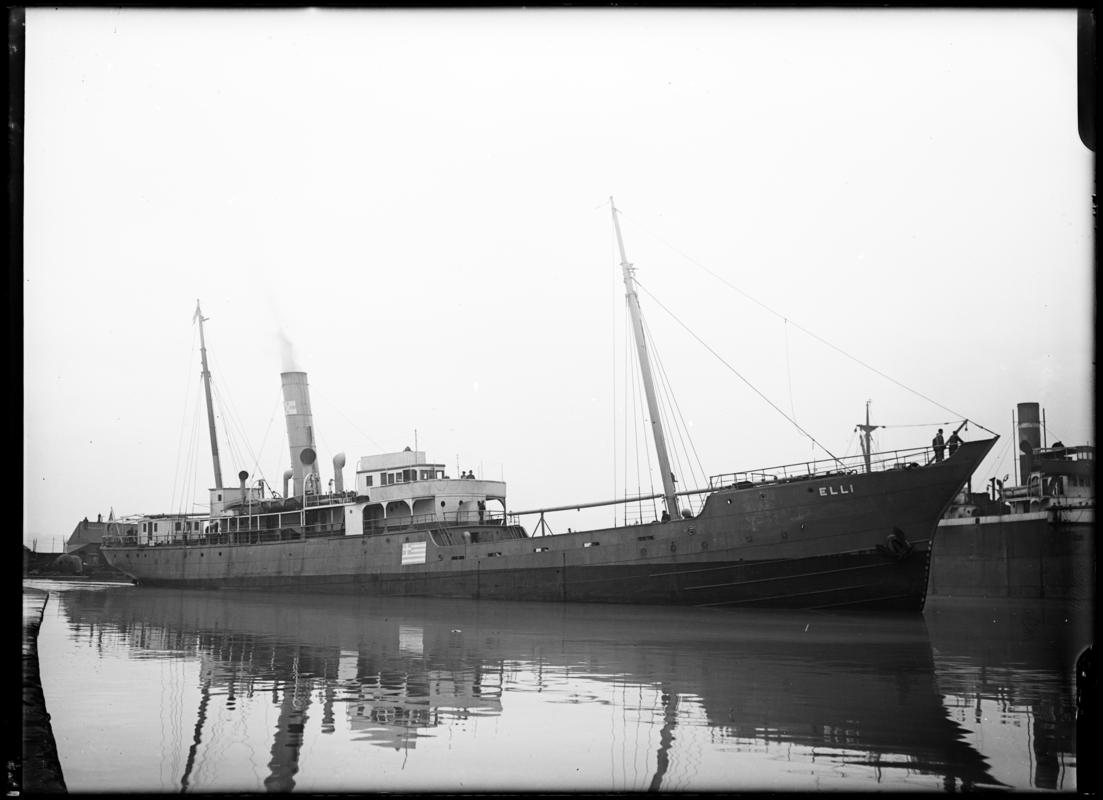 Hoisting cargo, unidentified docks. Photographer's stamp on the back of photograph.