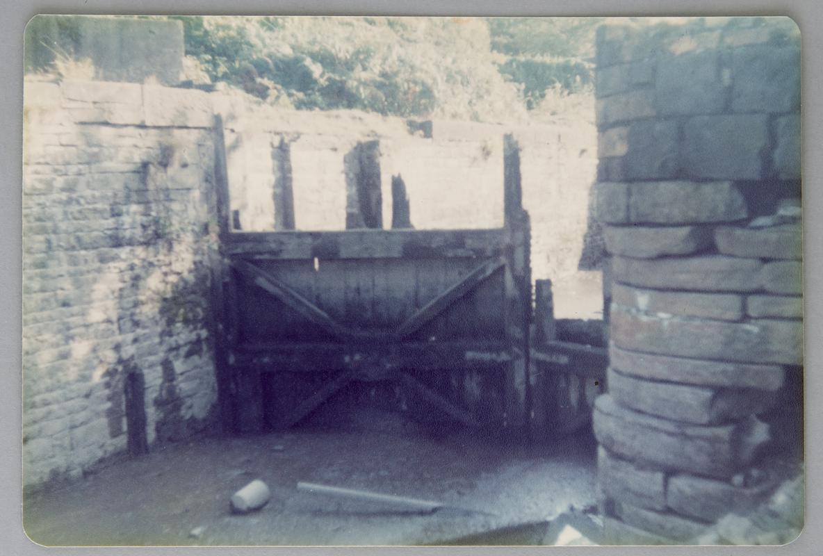 Remains of Red Jacket Canal (Tennant Canal) River Lock, Briton Ferry. Lock gate viewed from north east.