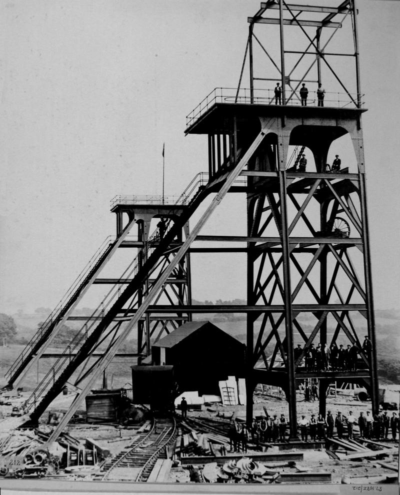 Cwm Colliery, construction of steel headgear, 11 August 1911.