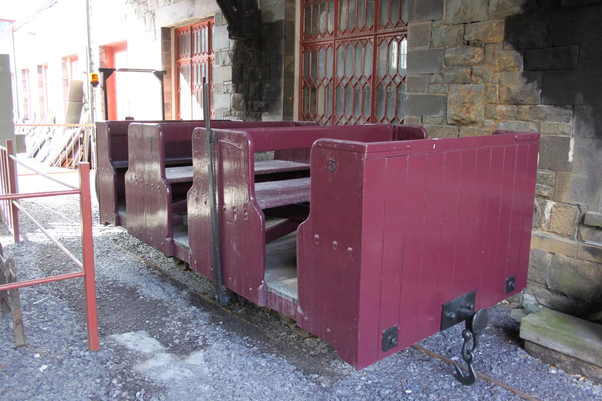Long wheelbase iron wagon 4 wheel flat car single flanged. Ex. Ffestiniog Railway, used at Llechwedd Quarries, Blaeanau Ffestiniog.