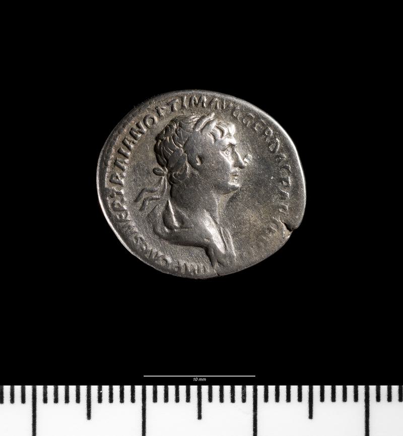 Notes: Sealed by the concrete floor of the strong room and found in it or just below it. Should "be considered as a scattered hoard or purse dropped c. 226". These nine denarii are not listed as a hoard by Wheeler.